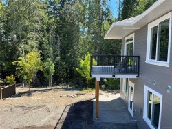 This half duplex home features impressive amenities, a rare 1 bed legal suite and zero strata fees. Enjoy ocean & forest views from the living room, kitchen, primary bedroom, and back deck. The kitchen offers elegant white cabinetry with soft-close drawers/ doors, under-cabinet lighting, & luxurious quartz countertops & backsplash. A tray ceiling in the living room enhances the spacious feel, complemented by durable laminate flooring and stylish tile in the bathrooms. Additional highlights include 9’ ceilings, an on-demand hot water system, and a natural gas furnace with air conditioning roughed in, plus a natural gas barbecue r/i connection on the patio. The legal 1 bed suite has convenient level entry, its own electric hot water tank, and baseboard heating. Built by an established builder, this home comes with a 10-yr warranty and showcases craftsmanship. Measurements are approximate so please verify if important. Don’t miss the chance to experience this remarkable half duplex!
