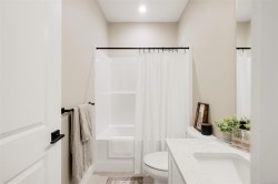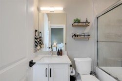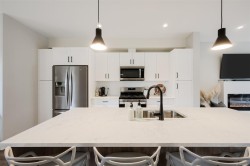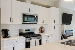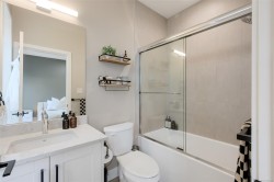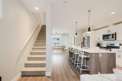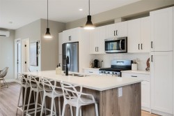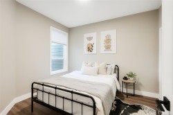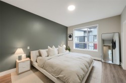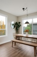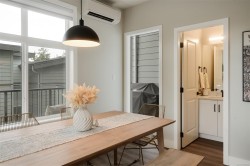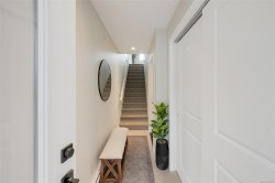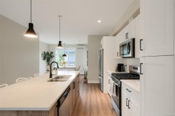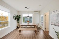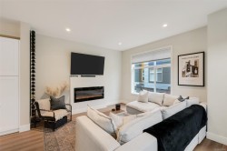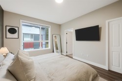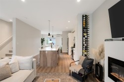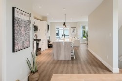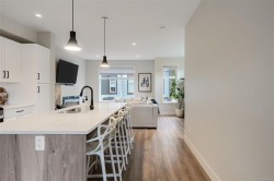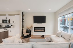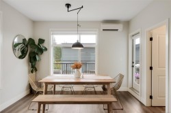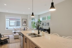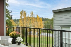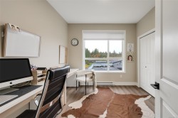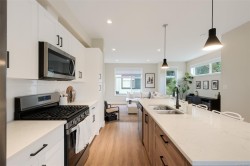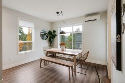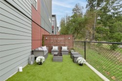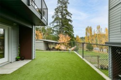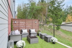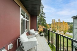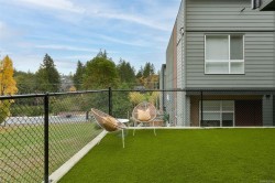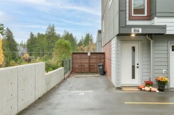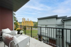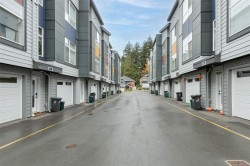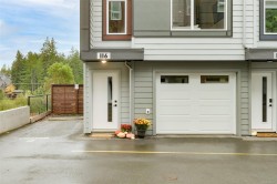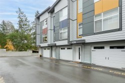 Beautiful 2022 built prime end-unit corner townhome on Triangle Trail near Olympic View golf course. Impeccably presented with over 1400sf on 3 levels plus double-depth garage for vehicle storage or gym/workshop. Open layout on the main with living room, spacious kitchen with quartz counters, stainless appliances and abundant cabinet space, plus dining area and access to deck overlooking the surrounding area. 3 bedrooms up, primary with ensuite and plenty of light from the large windows. Heat pumps for efficient heating and air conditioning. Bonus huge wraparound patio- your own fenced yard, unique to this unit in the development. Great location near brand new Scianew Stelitkel Elementary School along with Red Barn Market, the galloping goose trail and Royal Bay nearby.