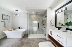 Dramatic views and the comfort of new construction from Bear Mountain. Perched high above the homes below, this 4 bedroom 5 bathroom plus den home is quality built and features an expansive 1000 sq ft hot tub ready rooftop patio. Open concept main floor. Living room with designer electric fireplace, and custom surround. Dining room with wet bar. Balconies off the main floor and primary bedroom to take in the views, as well as a covered patio off the lower level additional family room with additional kitchen potential, and another full bath that you could easily add more bedrooms to for additional accommodation. Primary bedroom with ensuite with jetted shower and soaker tub. Main floor office. Natural Gas forced air heating system, roughed in for A/C. Security system with cameras installed. Hot water on demand. These custom built homes are not to miss, a great opportunity to find luxury and comfort.