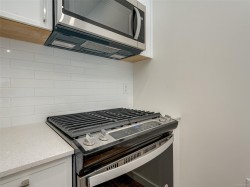 MOVE IN READY - E FLOOR PLAN - This is an amazing 2 bedroom 2 bathroom unit with opposing bedrooms on either side which makes for a great layout! Enter inside to find a bright open feel with a great sized kitchen offering a peninsula style quartz island! Enjoy cooking with a Natural Gas stove while enjoying your modern finishing's throughout including; stainless steel appliances, quartz countertops, vinyl plank flooring, gas range & gas BBQ hook up, highly energy efficient heating & cooling, roughed in EV charger, under ground secure parking, bike storage, gym, and a work station! Enjoy walking to restaurants, pubs, shopping, recreation, schools, E & N Trail, Royal Colwood Golf Course, transit, hiking trails and much more! 5 minute drive to HWY 1 plus a walk score of 73 & bike score of 95! 2 pets no weight restrictions and rentals allowed - Price+GST.