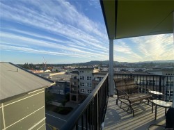 Top-floor south-facing corner suite with sweeping views of the Olympic Mountains, sunsets, and the Sooke Hills. This bright 1-bedroom home features a spacious wraparound patio, a modern kitchen with stainless steel appliances, soft-close cabinets, and quartz countertops, wide-plank vinyl flooring, plus in-suite laundry. The pet-friendly building allows rentals and includes secure underground parking and bike storage. Just steps to the new University of Victoria John Horgan campus and the future 6-acre city Park, as well as transit, shops, recreation, movie theater, bowling, Starlight Stadium, and a diverse mix of restaurants. Also close to Downtown Langford and Westshore Town Centre. A smart choice for first-time buyers, seniors, investors, or downsizers—this one is worth a closer look. Book your private viewing today!