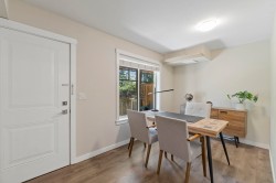 Welcome to Gabriola Park-Parkside Townhomes by Royale Properties, beautiful 4 bedroom, 2.5 bathroom townhome! The main floor features an open-concept layout with 9’ ceilings, where the kitchen is the heart of the home. Designed with style, stainless steel appliance package including a Venmar chimney hood fan. The kitchen smartly separates the living and dining spaces, creating both function and style. A powder room on the main floor adds convenience, while the covered balcony off the dining room is perfect for year-round, overlooking the fully fenced backyard. The true highlight of this home is its prime location backing onto a lush greenbelt—offering peace, privacy, and a touch of nature. Centrally located near multiple high rated schools, eatries, shops, parks, transit and so much more!