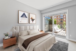 2 BED + DEN, 2 BATH CORNER UNIT with an INCREDIBLE 708 SQ. FT. PATIO—an exceptional outdoor space ideal for entertaining, summer dining, or morning coffee. Original owners—HOME HAS NEVER BEEN TENANTED. Move-in ready and well maintained with updated laminate flooring, built-in entertainment cabinetry, updated dishwasher, and washer/dryer. INCLUDES 2 PARKING + STORAGE LOCKER. Steps to shops, restaurants, and daily essentials in the heart of Willoughby Centre. TWO PETS ALLOWED (combined up to 65 lbs). Quick completion possible.