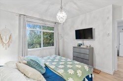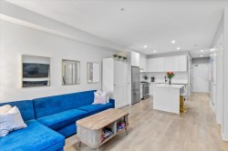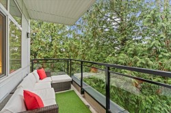 Welcome to "THE AUDLEY" on Brydon Crescent! This dreamy corner unit backs on to a protected greenbelt that creates serene ambiance. A gorgeous 3 bedroom 2 Bathroom with 2 Parking stalls, High 9ft ceilings throughout with a bright open concept functional floorplan. A very well-thought out corner unit which includes a primary bedroom with a walk-in closet, Modern color scheme with SS appliances, gas stove, quartz countertops, large island with seating, large windows with lots of natural light, soft close doors, also a great outdoor balcony to relax or BBQ on and a convenient in suite laundry. Amenities include a Gym, Yoga room, private courtyard with playground, Fire Pit, as well as a meeting room. Close to schools, transit (Future Sky Train), shopping, and easy access to Highway 1.
