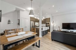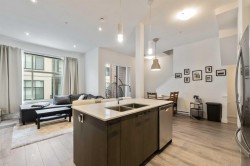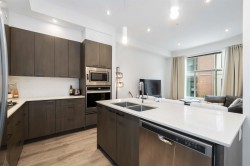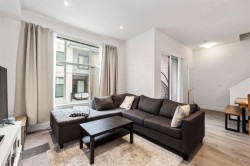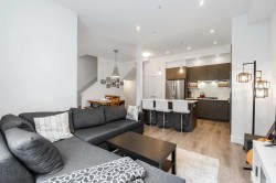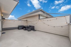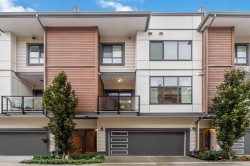 Welcome to Boulevard in Willoughby! This bright and modern 2 bedroom, 2.5 bath townhome is designed for both style and comfort. The open main floor features 10’ ceilings, oversized windows, and a chef-inspired kitchen with quartz counters, gas range, and an oversized island perfect for gatherings. Upstairs offers two generous bedrooms, including a primary with walk-in closet and ensuite. The showpiece is your private rooftop patio—ideal for BBQs, morning coffee, or relaxing evenings under the stars. Enjoy the convenience of a rare side-by-side double garage plus your own dedicated extra parking stall. Located close to schools, shops, parks, and transit with quick access to Hwy 1,this move-in ready home has it all!