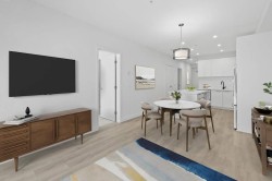 Introducing The Audley in Langley! Constructed by the esteemed Reddale, this remarkable penthouse unit offers 2 bedrooms and 2 bathrooms. The residence showcases top-notch features such as a Fisher & Paykel refrigerator, a 5-burner gas range, and quartz countertops throughout. The exterior boasts sturdy Hardiboard siding and brick, along with energy-efficient windows and glass doors. The master ensuite includes double sinks and elegant frameless shower doors.Over 3100 square feet of incredible amenities await, including a fully equipped gym, yoga/meditation space, meeting room, library/social area, study room, guest suite, workshop, dog wash, and bike storage. The landscaped courtyard is complete with a BBQ area, cozy fireside seating, a children's play area, and a community garden.
