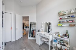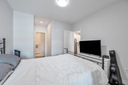 Brydon Green. Spacious 2 bedroom 2 bath top floor bright unit with oversized windows and 9' ceilings. Kitchen has Samsung S/S appliances incl microwave, European white lacquer cabinets, breakfast bar with granite countertops. Spacious primary bedroom with A/C. Ensuite has twin sinks & large walk-in shower. Large storage area and w/d. Centrally located and minutes away to schools, parks, Willowbrook Mall and transit plus future skytrain station, Great walking nature trails! The High quality laminate floors throughout. 2 pets allowed. 5 years remaining on building warranty. Low strata fees of $304.00. 1 parking (additional available). Top floor condo is vacant and ready for occupancy.
