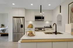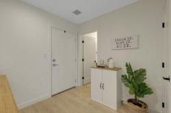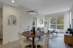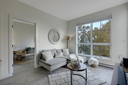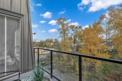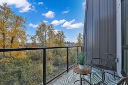 Latimer Village! TOP PENTHOUSE, 2 BED + 2 BATH, EAST facing - GREEN SPACE, QUIET-SIDE, features an open concept floor plan with extra higher ceilings, oversized windows that let in tons of natural light. A/C ready hook-up.Lots of UPGRADES; Fridge, Stove, LAMINATE FLOORING THROUGHOUT , 2 generous sized WALKIN closets. Most popular & practical unit in the complex. EV charger parking. A RESIDENTIAL - ONLY building (NO COMMERCIAL units). Blacksmith Bakery, plus more restaurants, salons, gym, and shopping are all only steps away. Easy access to Hwy 1. Short walk to Carvolth Bus Exchange. Be quick and book your showing today!