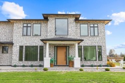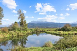 CUSTOM 2021 HOME + SECONDARY RANCHER ON 13.05 ACRES! Pitt Meadows/Maple Ridge border, 6 mins to Golden Ears Bridge. MAIN HOME nearly 3,400 sq/ft features stunning open layout with great room, dining area w/ folding doors to a covered patio. Gourmet kitchen w/ hidden pantry & spice kitchen, living room, plus versatile TV/office room. Upstairs: 3 primary bedrooms + office w/ ensuite. Built-in speakers, cameras & high-end finishes throughout. SECONDARY HOME approx. 3,000 sq/ft rancher offers 5 beds & 3.5 baths, separate driveway & private yard. Land planted with BLUEBERRIES: 7.5 AC Bluecrop, 3 AC Duke, 400 plants Calypso. Gorgeous Golden Ears Mountain views, private yard, river/dyke access for evening walks. Parking pad for trucks & equipment. Mins to Swaneset Bay & Golden Eagle Golf Courses.