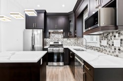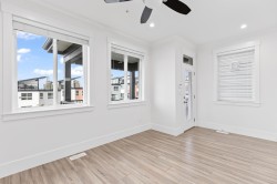 "Silver Winds", a bright and modern corner unit townhome in the heart of scenic Silver Valley—just steps from Maple Ridge Park, Alouette River, and surrounded by lush trails. This stylish 2-storey home offers 4 bedrooms, 3.5 bathrooms with a functional layout. The main floor boasts a white-on-white kitchen with quartz counters, a large island, cozy gas fireplace, laminate floors, and open-concept flow for effortless entertaining. Up you'll find 3 generous bedrooms, Ancl a spacious primary suite with full en-suite. Downstairs is a major bonus: a fully finished basement with separate entrance, wet bar, rec room, 4th bedroom, bathroom, and rough-in for a second laundry—ideal for tenant or extended fam, Roughed in for a SUITE~! open house nov 23RD 12-2