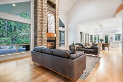 A truly rare offering — over an acre in the city with the privacy of an executive gated estate, just minutes from Meadowridge School. Enjoy private river access, a natural swimming pool, hot tub, and wood-fired pizza oven within a manicured, irrigated, fenced outdoor oasis. It feels like you have no neighbours, yet remains close to shopping, transit, and amenities. With 5,300+ sq. ft., this custom home features 6 bedrooms, 7 bathrooms, 4 large bedrooms upstairs. 5-car garage features a 550 sq. ft. loft with its own fireplace, ideal for the in-laws, working from home, or extra recreation space. RV parking, double driveway, and parking for 16+ cars. A one-of-a-kind home unlike anything else.