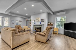 Welcome to Castlemount at Fraserview Village, well-maintained 1 bed, 1 bath home designed for comfort & convenience in a 55+ community. This bright & spacious unit features an open floor plan w/ large kitchen offering a peninsula w/ extra seating, flowing into the dining & living areas. Enjoy a cozy gas F/P, vaulted ceilings & oversized windows that fill the space with natural light. Dual-header A/C units in both the living room & bdrm ensure year-round comfort. The generously sized bdrm includes dual closets & access to the full bath. Balcony offers lovely views of the Fraser River. Fraserview Village, you’ll have access to a clubhouse, exercise centre, indoor pool, workshop & more + easy access to the West Coast Express, Fraser River waterfront & all the amenities of Downtown Maple Ridge