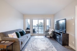 EDGE ON EDGE - Immaculate South-East facing, bright 4th floor 1 BED+PLUS DEN /1 Bath suite in the popular Edge on Edge built by Maclean Homes! Open concept floor plan features 8' ceilings, granite counters, undermount sinks, kitchen w/shaker cabinets & S/S appliances. Large master with walkin closet & cheater ensuite. Front loading in-suite laundry & large den/office space. Covered deck with street parking all around, secure underground parking, 2 pets & rentals allowed! Steps to Shopping, Transit, Restaurants, Rec Center, gyms and Schools! Call today to book your showing!