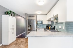 WELCOME TO ABERNETHY LANE! This BRIGHT and WELL-MAINTAINED 2-LEVEL END UNIT townhome features 3 LARGE BEDROOMS plus a FLEX/DEN area and 2.5 BATHROOMS. Enjoy a SPACIOUS layout with an UPDATED KITCHEN, OPEN-CONCEPT LIVING & DINING areas, and a COZY GAS FIREPLACE. Upgrades include a NEWER WASHER & DRYER, FRIDGE, and DISHWASHER (2021). The PRIMARY BEDROOM offers VAULTED CEILINGS and ample closet space. Includes 2 PARKING SPACES, one in the SINGLE-CAR GARAGE. Located in a FAMILY-FRIENDLY complex near SHOPPING, SCHOOLS, TRANSIT, AMENITIES, and the ABERNETHY CONNECTOR. A FANTASTIC HOME in a GREAT LOCATION!