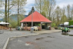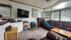 Welcome to Tapadera Estates, a gated community where you own the land! This bright and cozy 1-bed & bath, manufactured home offers efficient living with vaulted ceilings and A/C for year-round comfort. Enjoy a low-maintenance and beautifully landscaped lot with a shed, mini freezer, and wall-mounted TV included. Pets and rentals allowed, no age restrictions. Low strata $192/mo gives access to a million-dollar clubhouse with indoor pool, hot tub, sauna, gym, and river access. Steps to Sandpiper Golf Course and minutes to Sasquatch Mountain Ski Resort—perfect for full-time living or a vacation getaway. Affordable, secure, and surrounded by nature—discover why Tapadera Estates is one of Harrison Mills' hidden gems!