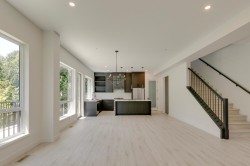 This stunning, newly built home sits on a rare pie-shaped lot with a private yard and peaceful greenbelt views. Inside, enjoy vaulted ceilings, wide-plank flooring, quartz countertops, and modern tile throughout. The chef’s kitchen impresses with stainless steel appliances, floor-to-ceiling cabinetry, a large island, and expansive windows that bring the outdoors in. The spacious primary retreat features a cozy sitting area, walk-in closet, and spa-like 5-piece ensuite with heated floors and a walk-in shower Upstairs offers two more bedrooms, a full bathroom, and a laundry room. The bright, fully finished walk-out basement includes two additional bedrooms, a 4-piece bath, and a wet bar—perfect for guests, entertaining, or a future suite.