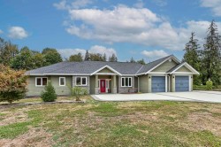 Luxury meets practicality in this newer, custom-built rancher on nearly an ACRE of fully, flat, usable land- backing onto green space. All on one level, offering 3 bedrooms + a large den, 3 full baths, and open-concept living. With high-end finishes, tilt-and-turn windows, Hardie board exterior, and an oversized fridge in an oversized kitchen with ample cabinets & counter space. Detached 1,200 sqft garage with 12-ft ceilings, & 100-amp power—plus RV parking & space for 18 cars- second attached oversized double garage. Still under warranty, surrounded by estate homes near the golf and country club. Comfort of city water, and option to tie in to city sewer. 5 feet -2,200 sqft crawl space. Walk to tee off or enjoy nearby parks and trails.
