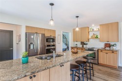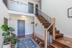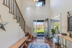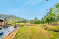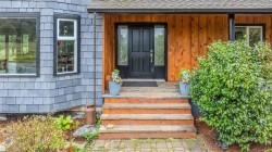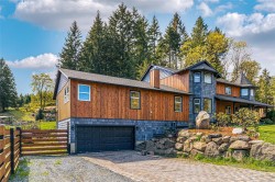 Discover this beautifully renovated, spacious custom farmhouse perfect for modern living and multi-generational families. The home features a main-floor primary suite, five additional bedrooms upstairs, and two convenient laundry rooms—one on each level. High-end acacia wood floors and an open-concept design create a warm, inviting atmosphere for entertaining. Recent updates include a new roof, siding, and more. Set on 31.5 acres of productive farmland, it offers hay fields, fruit and hazelnut trees, and 3+ acres of prime soil for blueberries or other crops. The long driveway leads to a private, mostly level meadow with a gentle rise to the west—ideal for horses or livestock. Excellent water quality from a drilled well and a pond suitable for trout farming add to the farm’s appeal. Located near schools, shopping, and just 12 minutes from Nanaimo.