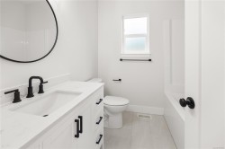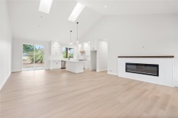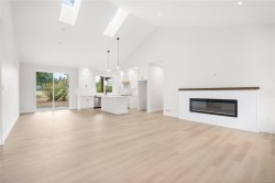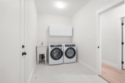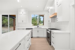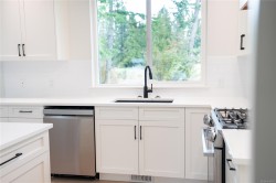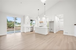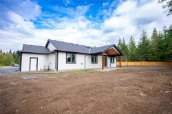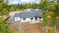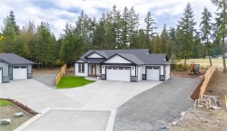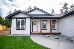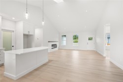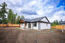 This brand new 1,604 sq ft rancher by John Schlitz Homes offers exceptional quality and modern design on a nearly half-acre level lot. With 3 bedrooms and 2 bathrooms, the home features 9-ft ceilings throughout vaulted ceilings in the great room, kitchen, and dining area. The chef’s kitchen is equipped with quartz counters, white cabinetry, a large island, and walk-in pantry. A rear covered patio with gas BBQ hookup provides seamless indoor-outdoor living, while the great room includes a striking fireplace and durable laminate flooring. The primary suite showcases a custom walk-in closet and ensuite with heated tile floors, tiled shower, and double vanity. Additional highlights include a triple garage with EV charger, RV/boat parking, Hardi Plank exterior with rock accents, covered front porch, and a 2.5-ton heat pump with air exchanger. Municipal water, septic system, and room for a shop complete this property just 10 minutes to downtown Nanaimo. Price plus GST. Measurements approx.