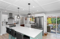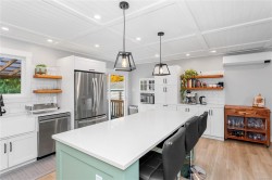 Welcome to 2055 Forest Dr — a recently updated 3 bedroom, 3 bathroom home in Central Nanaimo. The main floor was converted to an open-concept living, dining, and kitchen area featuring a large island with quartz countertops and stainless steel appliances. The primary bedroom includes a generous sized 2-piece ensuite and a walk-in closet that was previously a full sized bedroom. A second bedroom and 4-piece bath complete the main level. The finished basement provides a versatile family/rec room, full 3-piece bath, laundry area, and an additional bedroom. Additional highlights include a huge 34' deep attached garage, ductless heat pump for year-round comfort, new vinyl windows, RV parking, fenced rear yard. This turnkey home is located in a quiet residential neighborhood, conveniently close to NRGH, all levels of school and has easy access to all parts of Nanaimo.