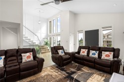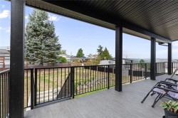 Move in for the holiday season! Better than new custom home with mountain, city & ocean views. 8 BD & 5 BA incl. a legal 2 bedroom suite. Located steps from Westwood Lake Park. Main level features a bright, open design w/ quartz counters, modern kitchen, spice kitchen, gas range, & 14'5 foot vaulted ceiling. The primary BD, laundry & additional BD are on the main for convenience. The high-efficiency heat pump, along with gas furnace, fireplace, & hot water on demand provide year-round comfort. The 13-panel solar system cuts hydro to near zilch. Upstairs has 3 BD, 4-PC BA & a covered balcony showcasing beautiful city, mountain, & distant ocean views. Downstairs has a rec. room, a BD & BA, & a private, vacant suite with its own entrance & covered patio, ideal for extended family or rental income. With its versatile layout, quality finishes, & prime location near Westwood Lake, all schools, shopping, recreation, parkway access, amenities, transit, this beautiful home checks all the boxes!