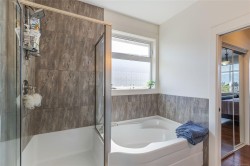 A beautifully appointed family home in Nanaimo’s desirable Linley Valley. With 6 bedrooms and 4 baths over 3,521 sqft, this residence offers space and versatility. The main entry opens to a bright living area with 9’9 ceilings, skylight, and gas fireplace. The gourmet kitchen features quartz counters and stainless appliances, adjoining 3 bedrooms including a primary suite with 5-piece ensuite. Step onto the deck to enjoy south-facing mountain and valley views, ideal for summer gatherings. The lower level includes a large rec room, flex space, full bath, and oversized bedroom with access to a covered patio and year-round green garden. A self-contained 2-bedroom legal suite with private entry, kitchen, and laundry provides excellent income potential. All within minutes of trails, parks, schools, shopping, and community amenities.