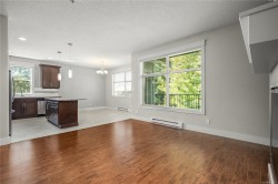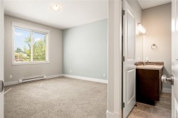 Bright, spacious, and perfectly located—this 1,454 sq ft upper-level townhouse in North Nanaimo checks all the boxes. Technically a 2-bedroom + den, it functions effortlessly as a 3-bedroom, 2-bath home with a smart, open-concept layout ideal for families, downsizers, or investors. The kitchen features a generous island and flows to a covered back deck—great for morning coffee or evening unwind. The primary bedroom offers mountain views, a walk-in closet, and 3-piece ensuite. Natural light floods the main living space, and a full-size laundry room adds everyday convenience. Located in a well-managed complex that allows one dog or one cat, and rentals are permitted. You're just a short walk to Dover Bay Secondary, McGirr Elementary, parks, transit, and all major North Nanaimo amenities. Upper unit living with lifestyle flexibility and comfort. Measurements are approximate; buyer to verify if important.