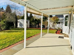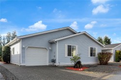 All the features you wanted to keep downsizing! This 3 bedroom & 2 bathroom, real modular home constructed in 2003 on foundation with garage, wired workshop & 2+ person cedar sauna/storage. As you enter this bright & freshly painted home, vaulted ceilings, cozy natural gas fireplace & wall of south facing windows greet you. Spacious covered patio overlooks the back yard space to park strip & small stream down below. Beautiful mature landscaping & separate garden shed. Great bonus features like a spacious pantry, built-in vacuum, garburator, softclose cabinetry, gas furnace & HW tank. Primary bedroom features room for a king bed, walk in closet & full ensuite bathroom with soaker tub. 2nd bathroom with walk-in shower. Full size side x side washer/dryer. 2 more bedrooms for office, sewing room or hobbies. Excellent wood-working/ puttering space in the wired workshop. Separate RV/Boat parking area for resident use. Any offers are subject to probate pls. All measurements approximate.