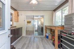Welcome to Seabreeze MHP! This charming 2-Bed+Den, 2-Bath home with extensive decks has a lot to offer! Featuring an open functional layout, 1300+sqft thoughtfully updated living space reflects pride of ownership. A new roof with leaf guard gutters; reinforced beams/stands; vinyl windows, insulation & range hood; hot/cold hose bibs, updated plumbing with new hot water tank,drain pan & washer, are just a few examples of the many updates that add to the homes appeal & functionality. New paint, WETT-certified wood stove (easily heats the entire home) & updated flooring add comfort and efficiency. Outside,enjoy your lovely garden with fruit trees & cedar strawberry patch.Bonus: detached workshop with power and improved woodshed-perfect for hobbyist & offers additional storage! Quiet,Private near ocean, yet close to Southgate Mall, Country Grocer, various amenities, trails & bus. Pet friendly! Well-maintained by onsite park manager. You rancher-like living in this great 55+community awaits!