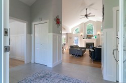 This Fairwinds executive rancher offers spacious main-level living in a peaceful neighbourhood just steps to the golf course. An expansive entrance & new engineered hardwood flooring set the tone for this upgraded, immaculate home featuring quality finishes, high ceilings & large airy rooms w/ expansive windows. Gourmet kitchen incl. granite counters & S/S appliances opening to a seating nook. Entertain with ease in the large dining rm w/ classic wainscoting or in the spacious living rm w/ cozy gas fireplace overlooking the beautiful yard. Primary bdrm features a W/I closet & fantastic 5pc ensuite w/ soaker tub & W/I shower. A thoughtful layout offers privacy w/ a second bdrm, den & 4pc bath on the opposite side. Backing onto crown land, the outdoor living areas incl. a private patio, established landscaping, irrigation, new stairs & new fencing. Offering the ultimate in active, coastal living with the Fairwinds Golf Course across the street & beaches & trails just a short stroll away.