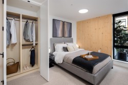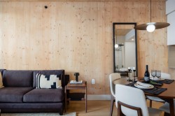 NEW PRICING & MOVE-IN READY! Welcome to Timber House by Aragon. This spacious 2 bed/1 bath ground floor home offers 940 SF of interior living space and approx 764 SF PRIVATE PATIO. Modern, high-design interiors feature exposed CLT panels, wide-plank oak floors, black roller blinds & A/C. The sleek kitchen offers full size Fisher Paykel + Smeg appliances, quartz counters, matte black hardware. Spa-inspired baths feature heated floors, floating vanities & frameless glass showers. Building amenities include: Courtyard, gym, BBQ area, dog wash, 1 parking (EV-ready opt), 1 storage. Steps to the boardwalk, 12 min to DT New West, 30 min to YVR, 35 min to DT Van. Photos shown may be from a display suite – not the actual unit. OPEN HOUSE EVERY SAT TO MON 1–4PM OR BY APPT.