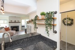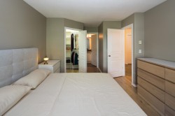 2 Large Dogs OK in your updated top floor one bedroom condo. This is a spacious covered balcony. The large living room has a gas fireplace and a nook for your computer / home office. There is easy to clean laminate flooring throughout. The kitchen has stainless appliances, granite counter tops and and breakfast bar. There is lots of space for dinner parties and you can easily have larger dining table. The master bedroom can fit a king sized bed and has a walk in closet. The cheater en-suite bathroom can be entered from the master bedroom or the foyer and features a larger soaker tub. 1 Secure Underground Parking, 1 Locker, bike room, gym, and beautifully landscaped garden courtyard. Bus Stop on 12th, steps to the New Westminster Quay, The Boardwalk, Shopping, Movie Theatres & SkyTrain.