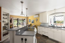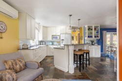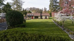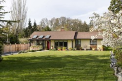 Discover this sun-drenched sanctuary in Deep Cove, just steps from beach access and forested trails. This exquisite 1504 sq ft rancher is masterfully finished, featuring2 bedrooms, 2 luxurious bathrooms, office and family room. Hardwood and heated slate floors, custom kitchen with quartz countertops, and a cozy propane fireplace. French doors lead to a private patio, while an attached garage with epoxy floors adds smart storage. A fully renovated secondary building offers spacious 1-bedroom, stylish kitchen, open-concept living, pellet stove, and garage and meticulous workshop with 10’ ceilings, perfect for guests or multi-gen living. The landscaped half-acre boasts cedar and metal fencing, curated gardens, raised veggie beds, RV parking with sani-dump, and a welcoming ambiance both day and night. Every detail sings of comfort, elegance, and coastal charm. Live the Deep Cove dream.