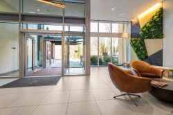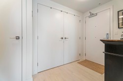 PANORAMIC VIEWS | LUXURY LIVING - Welcome to Hunter at Lynn Creek! This stunning 1 BDRM + DEN home offers breathtaking south-facing views, a spacious covered balcony, and air conditioning for year-round comfort. The sleek open-concept kitchen boasts quartz countertops, modern cabinetry, stainless steel appliances, and a gas stove-perfect for home chefs. The den is ideal for a home office, while wide plank laminate flooring adds a touch of elegance. Enjoy resort-style amenities: a gym, sauna/steam room, party lounge, BBQ area, kids' play zone, and more! Steps to Seylynn Park, Spirit Trail, rec center, shops, pharmacy, nail salon, and transit. 2 pets welcome!