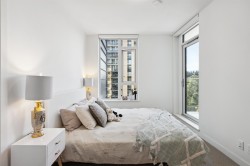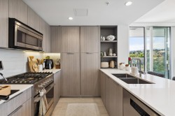 RARELY available perfect floor plan boasting 2-bedroom, 2-bathroom with a spacious den, perfect for a third bedroom or home office. Spanning 935 sqft, the unit boasts a functional layout complemented by a 170 sqft outdoor balcony. Enjoy breathtaking N/W views of the North Shore mountains, Grouse Mountain Resort, and downtown Vancouver. This condo is equipped with air conditioning, in-unit washer/dryer, and a full kitchen featuring stainless steel Fisher & Paykel appliances, quartz countertops, and an island. Residents have access to a brand new public recreation center next door and a variety of building amenities, including a gym, sauna, steam room, and party room. You'll be just steps away from North Shore biking and walking trails. The unit includes one EV parking and one locker.
