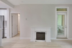 Bright and modern, fully renovated 1-bedroom + spacious den with an open layout and private balcony facing a nice, quiet creek and backing onto a peaceful green space—perfect for year-round privacy & relaxation. Features over-height ceilings, radiant in-floor heating (heating is included into the maintenance fees), wide-plank laminate flooring, quartz counters, and stainless steel appliances. The den is ideal for home office or reading nook. The Shore offers well-equipped gym, party room, yoga studio, playground. Enjoy local favourites like Italian Vomero Coffee House and Thomas Haas just steps away. Walkable location near shops, trails, transit, only 10 minutes to Lonsdale Quay via Spirit Trail. Includes 1 parking, 1 locker. Pets and rentals allowed!