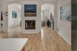 Exceptional opportunity to live at Pacific Grande Townhomes—a private, beautifully designed community perfectly located near all amenities at Wembley Mall. This spacious 2-bedroom + den, 3-bath home offers an open-concept main level with luxurious laminate and tile flooring, high ceilings, and custom lighting throughout. The gourmet kitchen showcases granite countertops, stainless steel appliances, and a large island ideal for entertaining. A dual-sided fireplace connects the dining and living areas, leading to a private patio for relaxing or summer gatherings. Freshly painted and move-in ready, this home offers two primary bedroom options—main level living with a spa-inspired ensuite and walk-through closet, or an upper-level retreat with full ensuite, sitting area, and private balcony for sunsets and mountain views. Experience luxury living at an affordable price in one of Parksville’s most convenient locations.