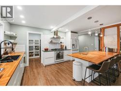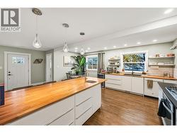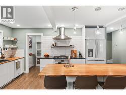 OPEN HOUSE SATURDAY DEC 6 10-1130am! Welcome to this charming cottage chic residence paired with modern comfort, ideally located in the highly sought-after “K” Streets neighbourhood of Penticton. Enjoy exceptional convenience with close proximity to transit, the hospital, schools, shopping, and a variety of dining options. The open-concept main level is designed for both everyday living and entertaining, showcasing coffered ceilings, living room with a striking stone gas fireplace and custom built-in shelving, and a beautifully appointed kitchen featuring a gas range, quality appliances, generous counter space, and a large centre island, the perfect gathering place for family and friends. The main floor also offers a spacious primary bedroom complete with a walk-in closet and a luxurious 5-piece ensuite, along with a full 4-piece bathroom and a convenient main-floor laundry area. Upstairs, you’ll find two generous bedrooms ideal for family, guests, or a dedicated home office. Situated on a desirable corner lot, the property boasts a double detached garage and a delightful guest cabin complete with a kitchenette and a 3-piece bathroom, ideal for visitors, extended family, or potential rental income. This is a rare opportunity to own a distinctive home in one of Penticton’s most desirable neighbourhoods, offering comfort, functionality, and outstanding lifestyle appeal. (id:27)