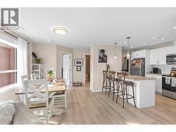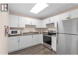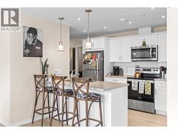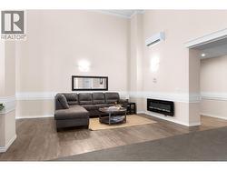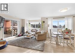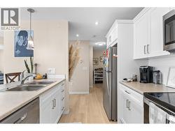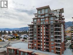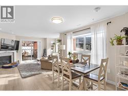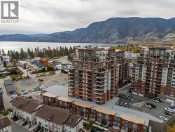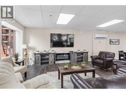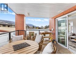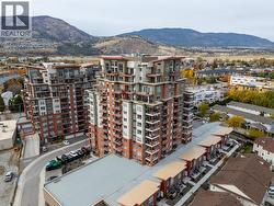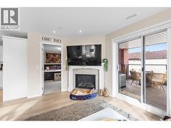 Modern Living with Breathtaking Mountain Views in Prime Penticton location: This bright, airy 4th-floor, southeast-facing corner unit delivers over 1,100 sq. ft. of refined style. Thoughtfully designed with 2 beds, 2 baths, and a versatile den, the open-concept space is flooded with natural light, featuring a cozy gas fireplace, expansive picture windows framing the views, and a sleek kitchen with tons of storage and counter space. The luxurious primary suite boasts a spa-inspired ensuite with a double vanity. Enjoy year-round entertaining on the spacious covered deck with a built-in gas BBQ hookup. Built in 2024 (concrete & steel), the building offers central climate control, covered parking, same-floor storage, and is steps from Skaha Park & Beach, welcoming all ages and two pets (with restrictions). (id:27)