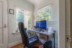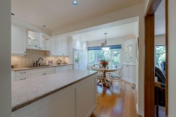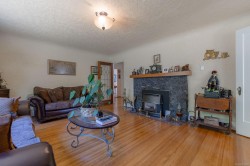 Charming and beautifully updated character home located on a quiet cul-de-sac, just steps from Roger Creek Park and the scenic Scott Kenny Trail. This .46-acre, partially fenced lot is a gardener’s dream, featuring vibrant flowerbeds, productive vegetable gardens, mature fruit trees, a greenhouse, and garden shed. The spacious main floor includes a kitchen with eating area, formal dining room, cozy living and family rooms—each with its own gas fireplace—plus a bedroom, 4-piece bath, and laundry. Upstairs offers two bedrooms, a 2-piece bath, and a generous primary suite complete with ensuite and walk-in closet. The unfinished basement provides ample storage or potential for future development. Notable features include original fir floors, leaded glass windows, French doors, and a brand-new heat pump. This home perfectly blends classic charm with modern comforts in a peaceful, nature-filled setting.