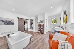 Nestled on a 1 acre lot, this home redefines luxury living. You’ll be captivated by the thoughtful design & open concept kitchen offering double appliances & endless cabinet space. Everything you need is on the main level (4 bedrooms & 3 bathrooms!) plus there's a second floor with a bedroom, full bathroom & large living area (suite potential!). Featuring 3 zones of heating & cooling with separate temp controls. Choose your heat source: heat pump, propane or wood. There's an oversized double garage & another separate oversized single garage. The primary suite offers a double sided fireplace, soaker tub, walk-in shower & walk-in closet, plus direct access to the home's private courtyard. Showcasing the highest quality Western Red Cedar, promising durability & timeless beauty. An automatic lawn irrigation system keeps the front & lower backyard lush. RV spot with power, water & sewer hookups. For a future shop - power, water & sewer are stubbed out at the house. This home has it all!