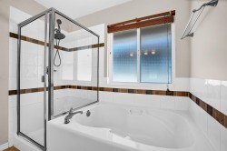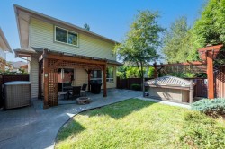 Citadel Landing, a Whistler-inspired community along the Fraser. Detached home features private fenced backyard with hot tub (w/motorized cover) and pergola - an inviting retreat for relaxation and entertaining. Inside, 9-ft ceilings and expansive windows brighten the open layout with views to river. A/C ensures year-round comfort. Chef’s kitchen with tall maple cabinetry opens to a family room with cozy gas fireplace. Upstairs, the primary suite offers a spa-like ensuite with soaker tub, glass shower and walk-in closet. A finished basement with rec room and 3-piece bathroom adds flexibility, plus an extended driveway for extra parking. Just 30 minutes to Vancouver, this home combines style, comfort, and convenience in one of Port Coquitlam’s most desirable locations!
