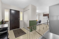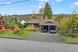 Mary Hill View Home!! Level-Entry Rancher with Full Basement! This spacious 2,660 sq. ft. home offers a rare level-entry design with a full walk-out basement. The living and dining rooms open onto a 9 × 24 ft deck where you can enjoy sweeping views from New Westminster to the Plateau. The bright kitchen includes an eating area and pantry, and the primary bedroom features its own renovated three-piece ensuite. Downstairs, the possibilities are endless, an oversized recreation room with sliding doors to the backyard, a separate laundry area, and a two-piece bath make this space easy to suite or convert for extended family. Perfect for a pool table, home theatre, or gym. Recent updates includes a new furnace, HWT 2016, roof 2014, and new carpet upstairs. The 70-ft frontage lot has attractive