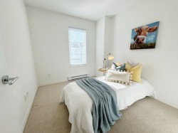 Welcome to Haven by Boffo Properties. Bright & Spacious 3 Bed/3 Bath, 1,496 sq.ft. End-Unit Townhome in Port Coquitlam! This meticulously maintained home features an open concept floor plan with 9ft ceilings, air conditioning, large windows, powder room on the main floor, and laminate flooring. Modern kitchen with an 8ft island, pantry, Ceasarstone quartz counters, and Kitchen Aid appliances. Upstairs offers 3 bedrooms including a large primary with ensuite. Enjoy two outdoor spaces: a large balcony & backyard. Tandem garage offers 2 covered parking spots plus a rear flex space—ideal for a home gym or extra storage. Family-friendly complex close to schools, parks, trails, and transit. Move-in ready! Open house this Sunday, Dec. 14th from 2-4pm.