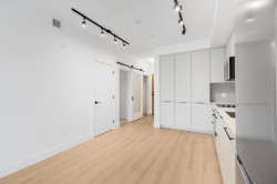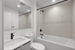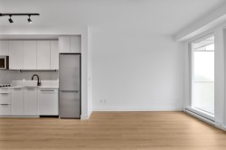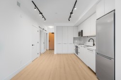 Modern West Coast Living at Moody Yards. Discover the best of Port Moody living in this brand-new 2-bedroom, 2-bathroom home at Moody Yards by Mosaic! Situated on the quiet side of the building, this 4th-floor residence offers 721 sqft of bright, open-concept living with oversized windows, high ceilings, and a modern kitchen featuring full-size stainless-steel appliances, quartz countertops, and ample storage. Enjoy spa-inspired bathrooms, in-suite laundry, and a 130 sqft balcony with serene mountain views. Residents benefit from exceptional amenities including garden plots, a kids’ play area, lounge spaces, and a co-working zone. Steps to Moody Centre SkyTrain, Rocky Point Park, and Brewers Row. 1 EV-ready parking & locker included. For viewing, contact Nader at (604) 786 - 5884