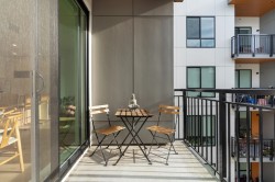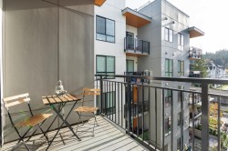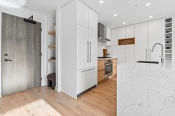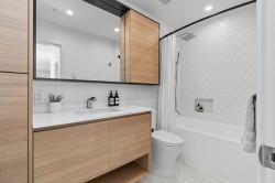 MODERN & REFINED! Stylish 1 Bed+DEN with A/C at 50 Electronic in vibrant Port Moody! This gorgeous home is designed to impress: Bright open layout, Elegant kitchen, Spacious primary bedroom w/custom closet organizer, Full height pantry, Oak laminate flooring, Dedicated den for your home office, Private south facing balcony with gas connection overlooking tranquil courtyard. Premium appliances: Fisher Paykel panelled fridge, Bosch DW, Bosch wall oven, gas cooktop and polished quartz counters. Sleek deep bathtub. Enrich your life with deluxe 9,000sf Amenity Bldg: fitness & bike room, yoga studio, dog wash, and co-working space! 1 Parking/2 lockers. Step outside into the heart of everything - Rocky Pt Park, breathtaking nature, craft breweries, coffee shops, skytrain! Showings by Appnt