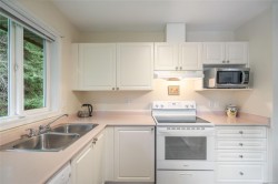 Bright and updated, this spacious 2-bed, 2-bath corner unit in Parkwood offers easy living close to everything in Qualicum Beach. Larger than many suites, it features skylights, new flooring, fresh paint, updated lighting, a new hot water tank, and an efficiently designed kitchen with new stove and adjoining dining area. Enjoy sunsets from the living room or cozy up to the gas fireplace, then step onto your balcony overlooking the peaceful forest behind the complex. The primary bedroom includes a walk-through closet and 4-pc ensuite, plus a generous second bedroom, 3-pc bath, and in-suite laundry. With parking, a storage locker, elevator, bike storage, shared workshop, and a well-managed, pet-friendly strata with no age restrictions, this quiet spot is walking distance to town, trails, shops, restaurants, the aquatic centre, and the waterfront.
