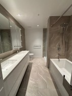 This brand new Richmond Center Living ! Show room layout sf. - 915sf 2 bedrooms, 2 bathrooms plus 1 den home. Tower B, 6300 Minoru Blvd offers modern living in the heart of Richmond. Steps to the RC mall and Brighouse sky train station. Featuring an open and efficient layout, 9" ceiling, the unit includes a contemporary kitchen with integrated high-end brands appliances and quartz countertops, a bright living area with large windows, a spacious bedroom, a stylish bathroom w/ radiant heated floor, and Bosch side by side Washer & Dryer. Enjoy a 350sf balcony with open city views, Central A/C & heating, and high-quality finishes throughout. The building provides excellent amenities like fitness center, private room & lounges, 2 guest suites etc. 1 Parking & 1 storage included. No pets !!!