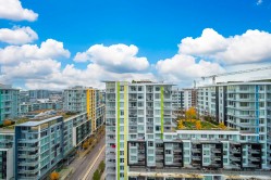 Discover elevated living at Concord Gardens Park Estate by Concord Pacific. This exceptional corner with high 15' ceiling penthouse features 2 bdrms, 2 full bathrms, 2 covered parking stalls, a generous den, and two private balconies. The modern chef’s kitchen showcases a large quartz island, top-quality appliances, and sleek full-height cabinetry. The primary bedroom includes a walk-in closet with custom built-in organizers. Enjoy year-round comfort with central air conditioning and heating. Residents have access to over 18,000 sq.ft. of Diamond Club facilities, including an indoor pool, bowling alley, basketball and badminton courts, a fully equipped gym, sauna, yoga studio, and more. Ideally located in the heart of Richmond—walking distance to Capstan SkyTrain, Costco, Foody World, etc.