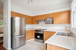 Renovated in 2023, 2 bed + den & 2 bath Townhome in Central Richmond is move-in ready! Spacious 1,146sqft family home PLUS 180sqft unfinished area on lower level (perfect for flex area/many options). Bonus, new roof (2025) paid by Seller ($29k). Updates incl NEW: washer/dryer, fridge, stove, hood fan, flooring (kitchen, bathrooms & landing), custom organizers in closets, built in storage on main, recessed lighting (upper floor), new bathroom vanities & toilets, window blinds, & smart thermostats. Main living area is bright & spacious w/9' ceilings & large windows. Forced air heating (lower & main floors), electric baseboard heating (upper). Low monthly maint fee of $261.87! Walk to Minoru Park, Aquatic Ctr, Library, Richmond Ctr, Schools & public transportation.